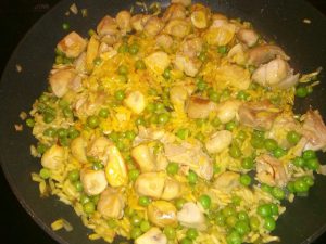 Kipblokjes met saffraanrijst, champignons en doperwten5 Kipblokjes met saffraanrijst, champignons en doperwten Facebook Comments