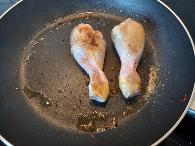 Bestrooi de drumsticks met wat zout en peper en de Italiaanse kruiden. Verhit in een koekenpan de olie en bak de drumsticks aan. Bak ongeveer 5 minuten.