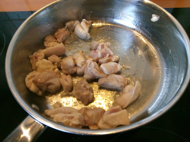 2. Verhit de olie in een hapjespan en bak de kip aan alle zijden aan.