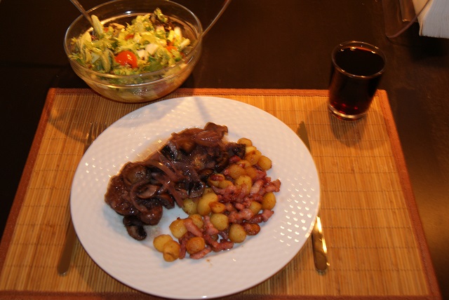 Snijd het brood in plakken en serveer bij het Frans kippannetje.