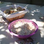 Roer de spekblokjes door het kippannetje en breng het geheel op smaak met een beetje peper.