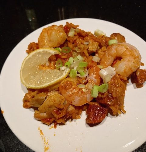 Meng op een bord de bloem met het paprikapoeder. Dep de kippendijen droog met keukenpapier. Wentel de kippendijen door het bloemmengsel en klop de overtollige bloem eraf.