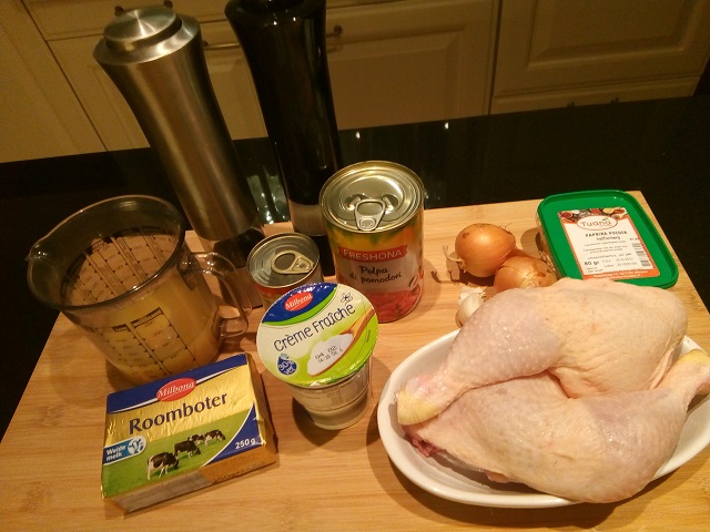 Doe de boodschappen en zet alle ingredienten klaar. Wrijf de kippenpoten in met zout en het paprikapoeder.