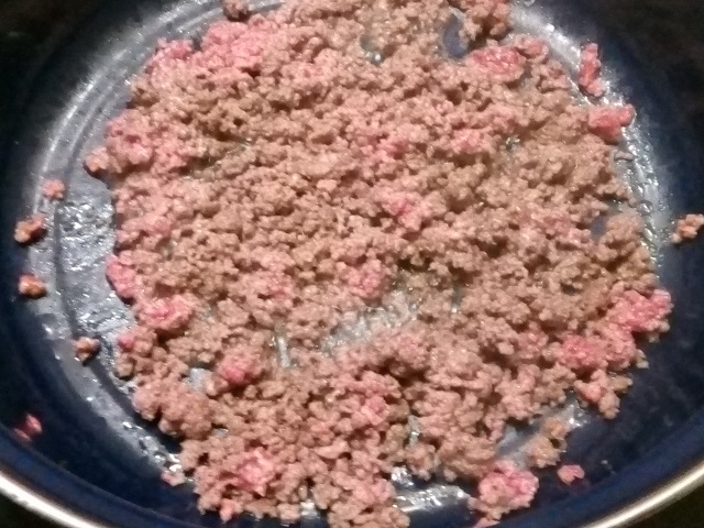 2. Verhit in een stoofpan de olie en bak het gehakt rul.