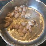 2. Zet de hapjespan op middelhoog vuur met de olijfolie en fruit de knoflook en de gember 1-2 minuten. Voeg de kip toe en bak 2-3 minuten mee.