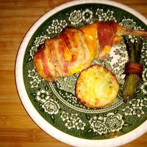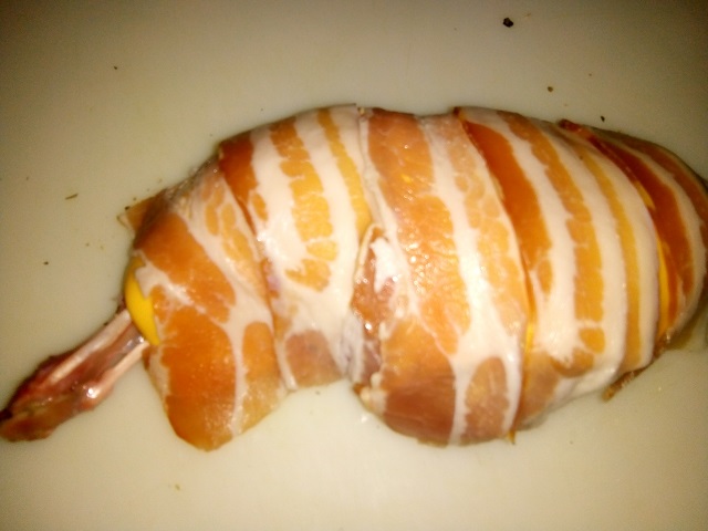 Konijnenbout met cheddar en gerookt spek