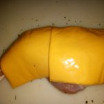 3. Bedek elke bout met 2 plakjes cheddar kaas.