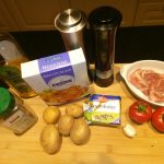 Verdeel de tomaten, gebakken aardappeltjes en de lamskoteletten over de borden.