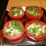 Haal het zaad uit de tomaten. Vul de tomaten met het peterseliemengsel.