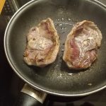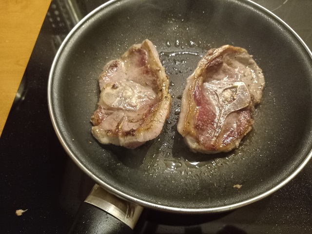 Keer de koteletten na een minuut of 5. Haal uit de pan en bewaar in aluminiumfolie.