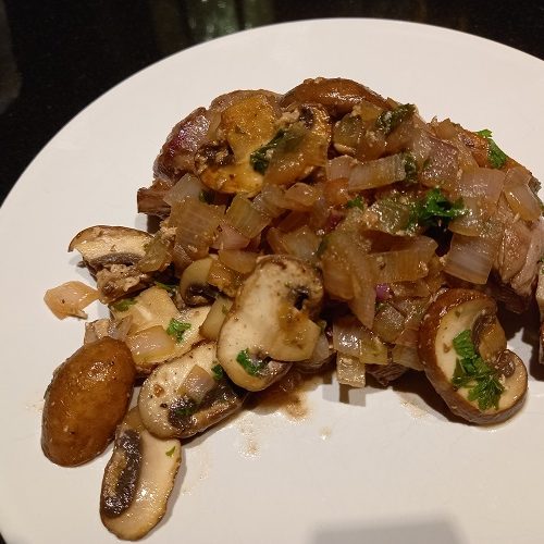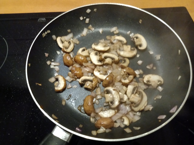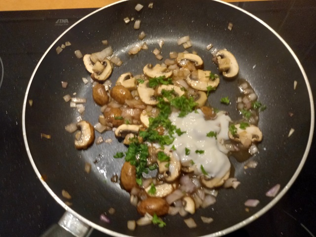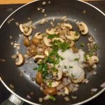 Bak in de overgebleven olie de champignons. Voeg iets zout toe.