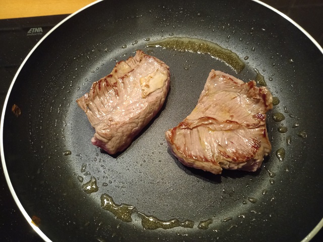 Verhit de olie in een koekenpan en bak de longhaas aan beide zijden tot de gewenste gaarheid. Bak ze tot dezelfde gaarheid als je ook zou doen bij biefstuk.