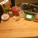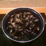 Zet alle benodigdheden klaar. Laat een flinke hoeveelheid water in de gootsteen of afwasbak lopen. Voeg daar 10 gr. zeezout aan toe. Doe de mosselen in het water en was de mosselen. Laat ze minimaal 45 minuten in het water staan.