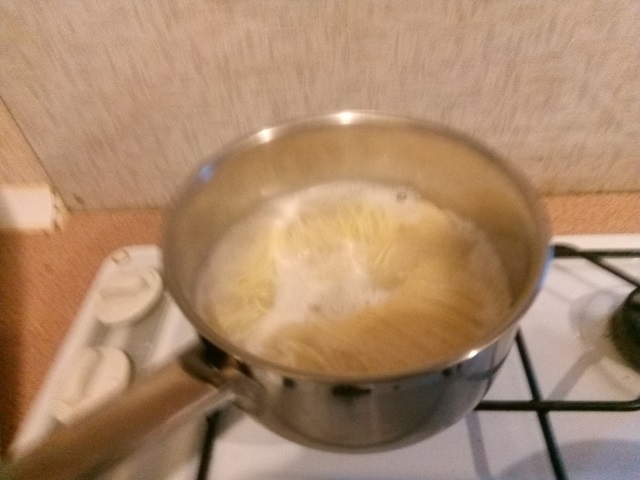 Kook intussen de mihoen volgens aanwijzing op de verpakking. Giet af zodra deze gaar is.