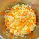 Verhit in een ruime pan 3 el. olie en bak de groenten aan. Laat 5 minuten bakken.