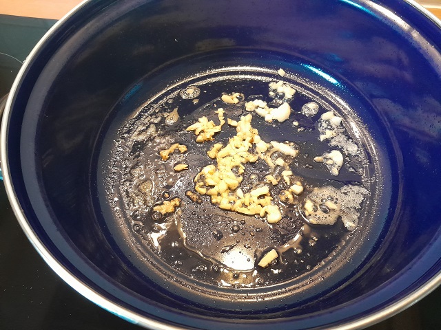 Verhit op middelhoog vuur de boter en fruit de knoflook gedurende 1 minuut.