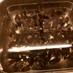 Laat de spoelbak half vol water lopen en doe de mosselen erin. Voeg ong. 20 gram zout per liter toe.