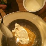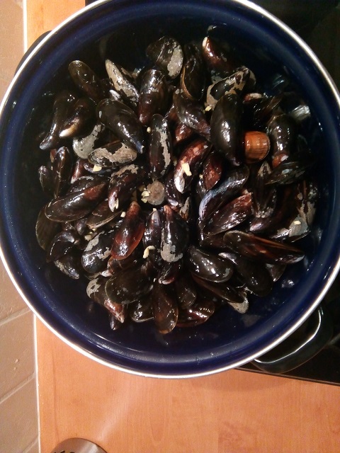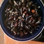Zodra de mosselen zich beginnen te openen voeg dan dit mengsel aan de mosselen toe. Roer goed door. Sluit de pan en laat nog een paar minuten stoven.