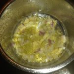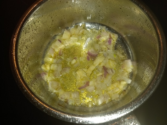 3. Laat de rest van de boter smelten op laag vuur en voeg de rest van de sjalot en de knoflook toe.