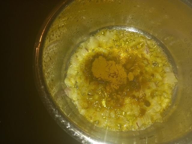4. Voeg de kerrie en de safraan toe en fruit deze even mee.