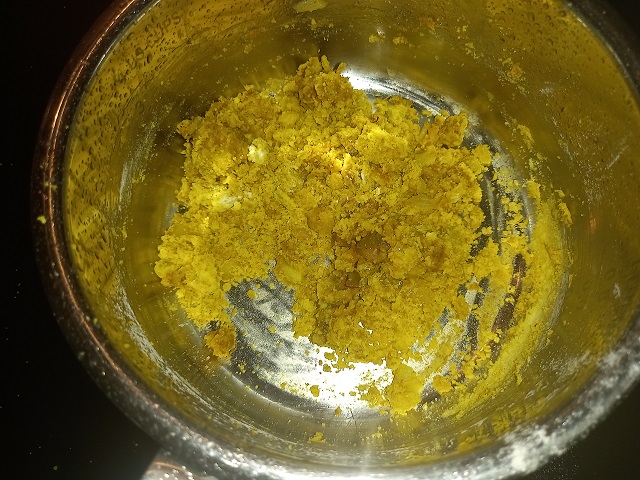 5. Voeg de bloem toe en bak deze onder voortdurend roeren gedurende een minuut of 2 om de bloem te garen.