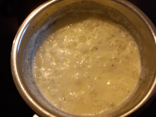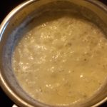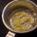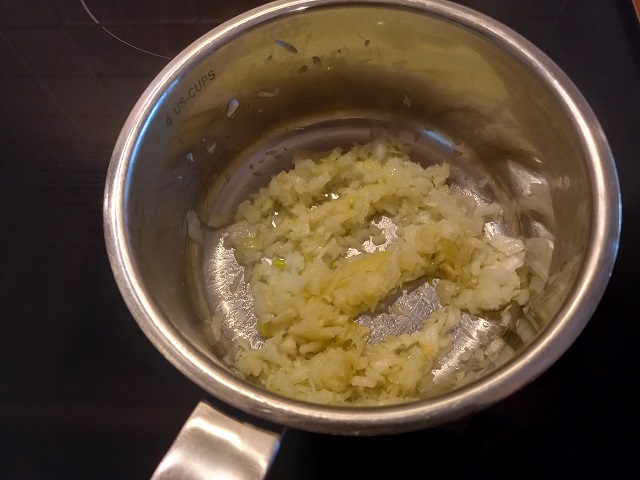 Verhit de olijfolie in een pannetje en fruit iets minder dan de helft van de uien tot ze glazig zijn en voeg dan de knoflook toe en fruit deze 30 seconden mee.