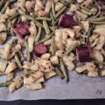 Schuif de bakplaat in het midden van de oven en bak het gerecht 30-40 minuten. Keer halverwege om. Het gerecht is klaar als de aardappels gaar zijn.