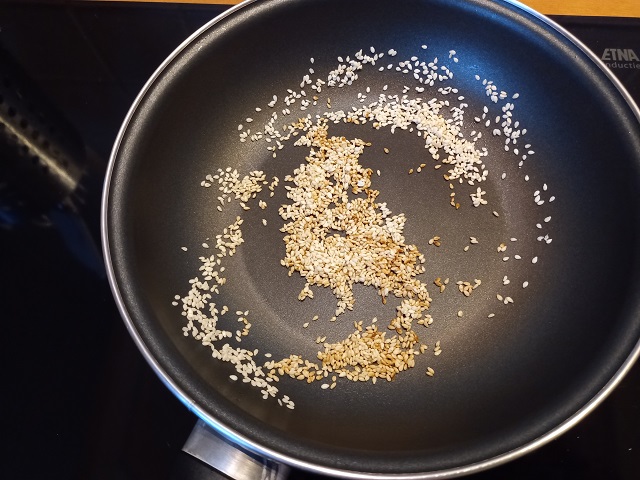 3. Rooster in een droge koekenpan de sesamzaadjes.