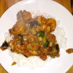 Verdeel het garnalenmengsel over de borden en geef de rijst erbij.
