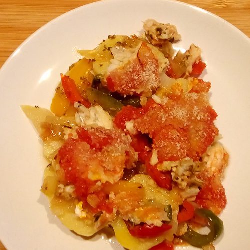 Van oorsprong is dit een Spaans gerecht maar door gebrek aan Spaanse rode peperpasta heb ik deze vervangen door sambal.