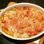 4. Strooi wat paneermeel over de schotel. Zet de schaal in de oven en bak het gerecht nog 30 minuten.