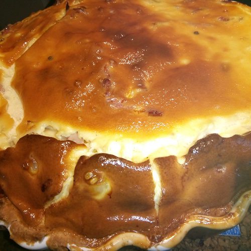 Zet de vorm in de oven. Laat 25 tot 30 minuten bakken. Haal de taart uit de oven en vorm en leg hem op een schaal.