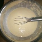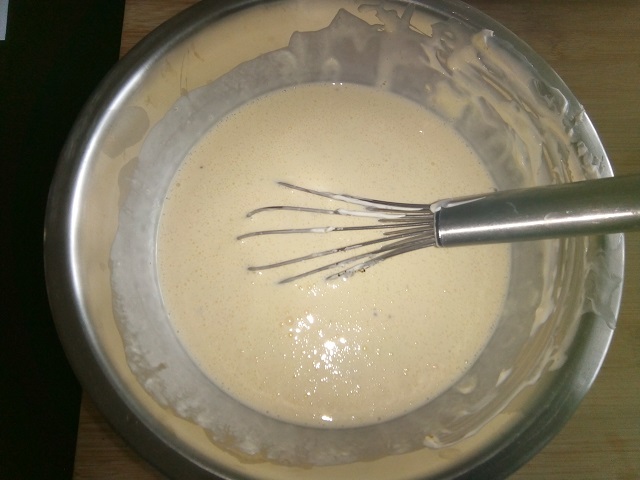 3. Klop in een kom de eieren los met een garde. Voeg de crème fraïche, zout, peper en de komijn toe en mengdit goed door elkaar.