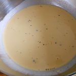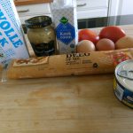 Meng in een kom de eieren, de kookroom, de mosterd, de melk en wat zout en peper. Meng de tonijn met het eiermengsel.