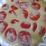 Zet de quiche in de oven en laat 45 minuten bakken.