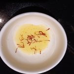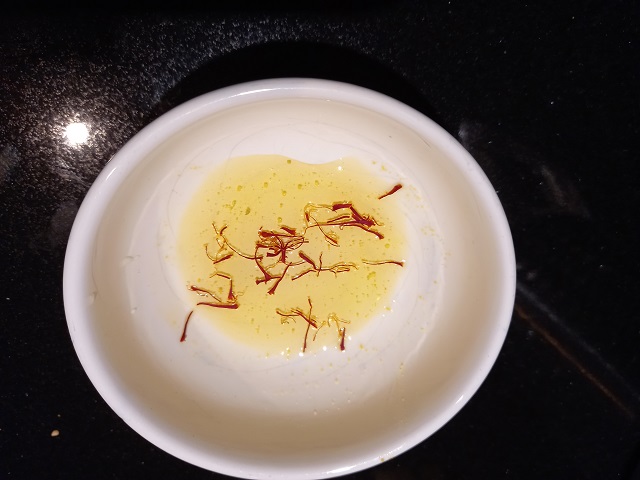 Voeg de saffraan toe. Roer goed door elkaar. Voeg dan de stukjes beenham toe.