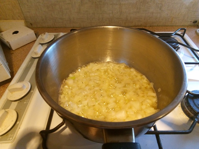 Maak de kippenbouillon van een tablet. Ik had een halve liter gemaakt want je weet het nooit precies met risotto hoeveel de rijst opneemt.