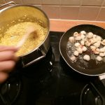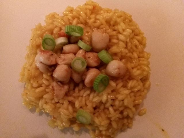 Laat de st.jacobsmosselen ontdooien. Los de safraan op in een beetje bouillon.