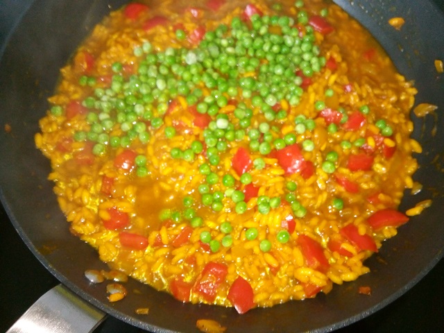 Voeg de doperwten toe. Roer deze goed door de risotto.
