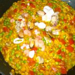Voeg de zeevruchten toe. Roer goed door elkaar en laat nog een paar minuten zachtjes stoven zodat de zeevruchten warm worden.