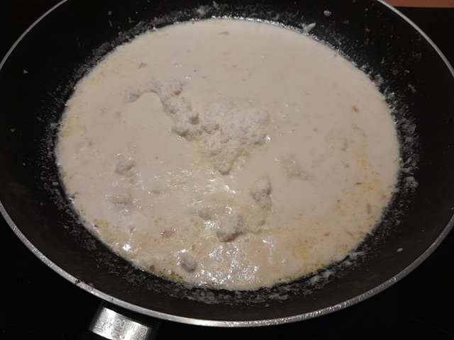 5. Voeg de kookroom toe en laat tot de helft inkoken. Roer regelmatig door.