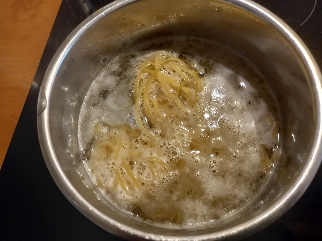 Kook de pasta volgens aanwijzingen op de verpakking. Zodra de pasta gaar is giet af, maar bewaar een kopje met pastawater.