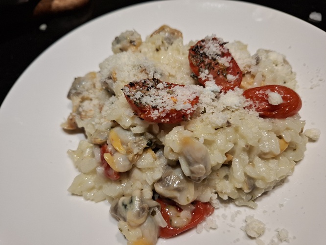 Romige Risotto met Kokkels en Gekonfijte Tomaatjes