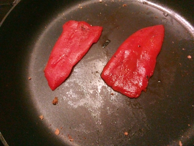 Verwarm twee gegrilde paprika's.