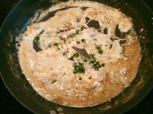 Sliptong in een mosterd-roomsaus