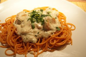 Spaghetti van quinoa met garnalen