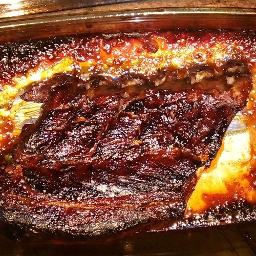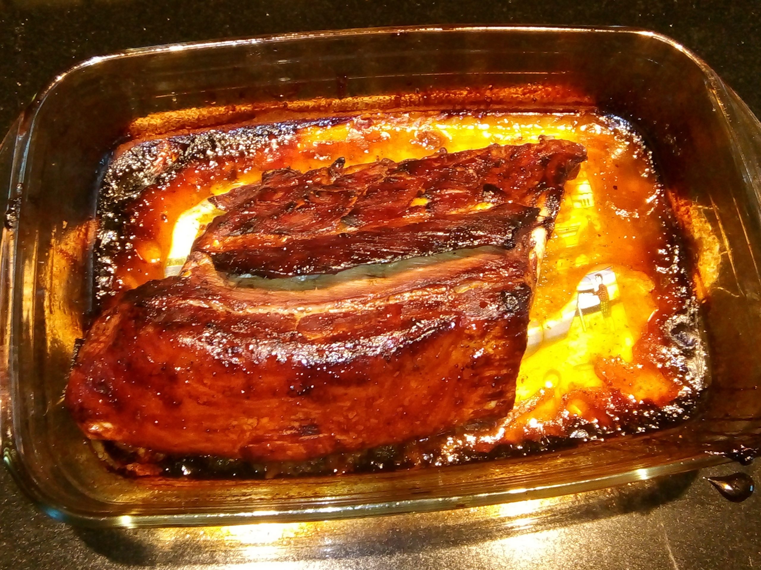Zet de ribs nog een paar minuten onder de grill. Mijn grill gaat tot 300° en toen was 2 minuten genoeg.