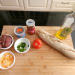1. Zet alle ingrediënten klaar. Snijd de tomaat in blokjes. Verwarm de oven voor op de temperatuur zoals aangegeven op de verpakking van het afbakbrood.