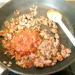 2. Verhit de olie in een koekenpan en rul het gehakt. Voeg de chilikruiden en de salsa toe. Meng het geheel goed door elkaar.