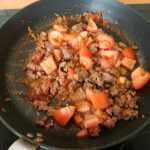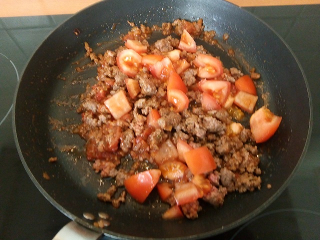 3. Voeg de tomatenblokjes toe en bak deze mee tot ze wat zachter zijn.